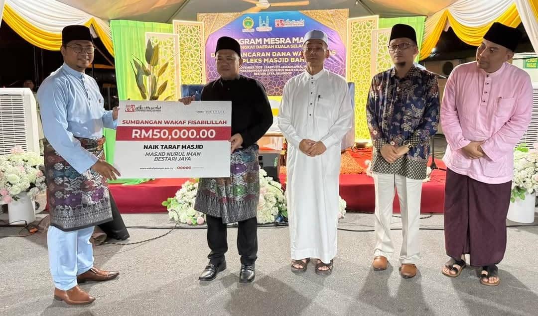12 November 2025, Kuala Langat –Perbadanan Wakaf Selangor (PWS) terus melaksanakan amanah ummah melalui serahan Sumbangan Wakaf Fisabilillah berjumlah RM50,000 kepada Sekolah Rendah Agama (SRA) Kebun Baharu, Kuala Langat.Sumbangan ini bertujuan untuk kerja-kerja pemasangan jubin di dewan terbuka sekolah, bagi memberikan keselesaan kepada para pelajar...