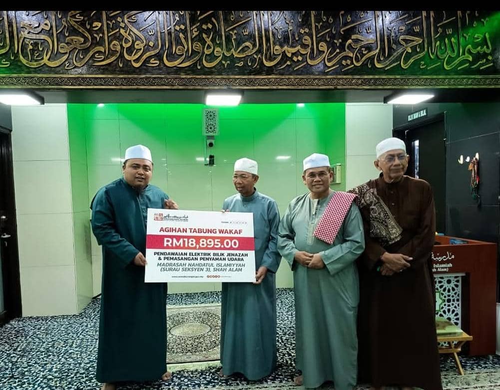 1 Januari 2026, Shah Alam - Perbadanan Wakaf Selangor (PWS) telah menyerahkan sumbangan Agihan Tabung Wakaf berjumlah RM18,895.00 kepada Madrasah Nahdatul Islamiyyah, Seksyen 3, Shah Alam bagi tujuan kerja-kerja pendawaian elektrik bilik jenazah serta pemasangan penyaman udara, sekali gus meningkatkan keselesaan dan fungsi kemudahan surau...