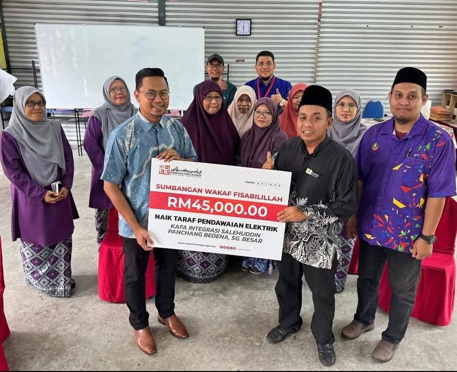 PWS telah menyerahkan Sumbangan Wakaf Fisabilillah berjumlah RM45,000 kepada KAFA Integrasi Salehuddin, Panchang Bedena, Sungai Besar bagi tujuan naik taraf sistem pendawaian elektrik sekolah.