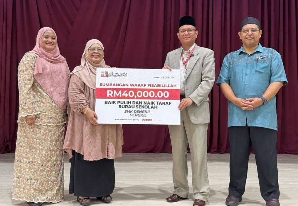25 Oktober 2025, Sepang – Perbadanan Wakaf Selangor (PWS) hari ini menyerahkan sumbangan wakaf fisabilillah berjumlah RM40,000 kepada Sekolah Menengah Kebangsaan (SMK) Dengkil bagi tujuan baik pulih surau sekolah serta menyantuni para warga pendidik sekolah berkenaan.